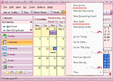 Efficient Lady's Organizer is a Windows personal organizer software program designed especially for women. It not only has various fashionable interface styles, but it is a professional full-featured program . After finish the following steps, you can have a well-organized and efficient new life!