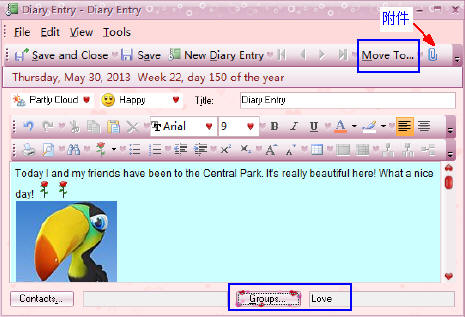 - Except write the boring letters in Diary module, you can also add some funny pictures, related attachments and even change the background color according to your mood at this moment. Besides, you can also specify a weather icon and an emotion icon for each diary entry. Efficient Diary will give you a different but colorful diary world.