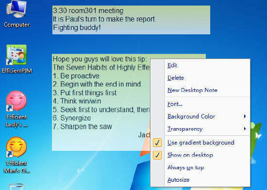- If you add a new desktop note for others, the message will "stick" onto their Windows desktops immediately.