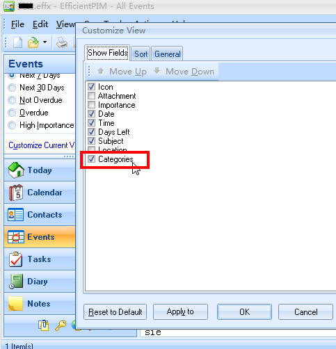 Step two: Make the category display in the home page. Click ‘Customize Current View’ on the left side and then you can set the Categories column to display on the home page. Now you can easily see whether it is a past event or not.
