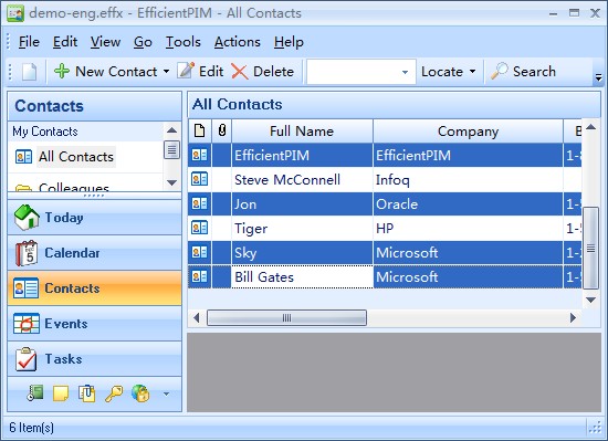 This article takes the Contacts module as an example and it is also suitable for the Events, Tasks and Notes modules. And it is also suitable for Efficient Man's Organizer, Efficient Lady's Organizer, Efficient Reminder, Efficient Address Book, Efficient Notes, Efficient Diary, Efficient Password Manager, Efficient Calendar, Efficient To-Do List, and Efficient Sticky Notes.
