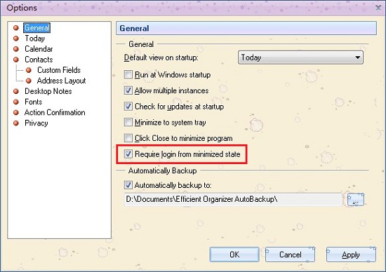- Please click Options on Tools menu, and click General on the right side of this interface. After that select Require login from minimized state. And it will take effect at next startup.