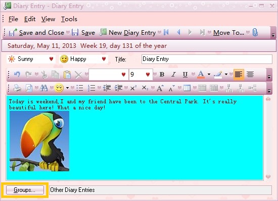 - Diary entries can be managed by group so that you can click the Date View or Group View button on Toolbar to switch between display modes.