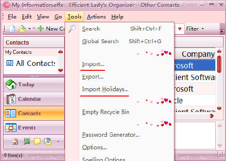Efficient Lady's Organizer is a Windows personal organizer software program designed especially for women. It not only has various fashionable interface styles, but it is a professional full-featured program . After finish the following steps, you can have a well-organized and efficient new life!