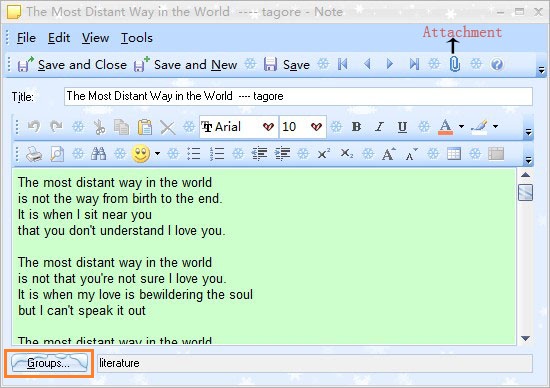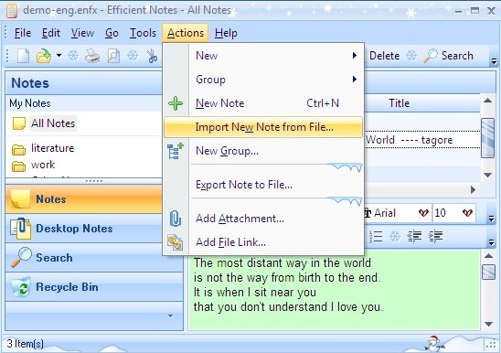 - Except write down your new ideas or copy and paste some useful information from internet just as Word, you also can import RTF files or text files into the note, please click Import New Note from File on the Actions menu. In addition, you can add some related attachments about the note.