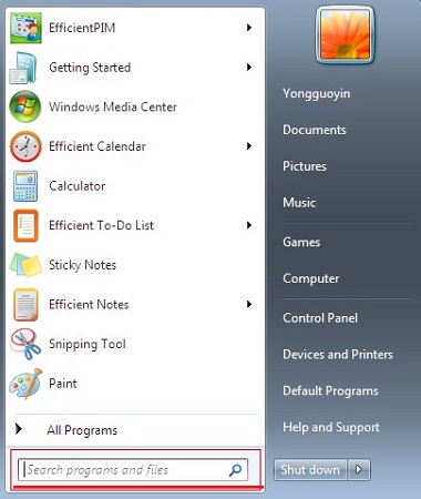 - If you are a Windows 7 user, you can click the Start menu, and then search *.effx files in the text box of Searching programs and files or enter Explorer by pressing "Win + E".