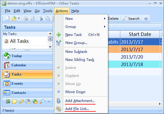 - You can add an attachment or a file link to any module of EfficientPIM except Today and Calendar Module.