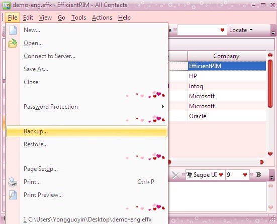 - If you use backup software to backup your data files, please close EfficientPIM before it works.
