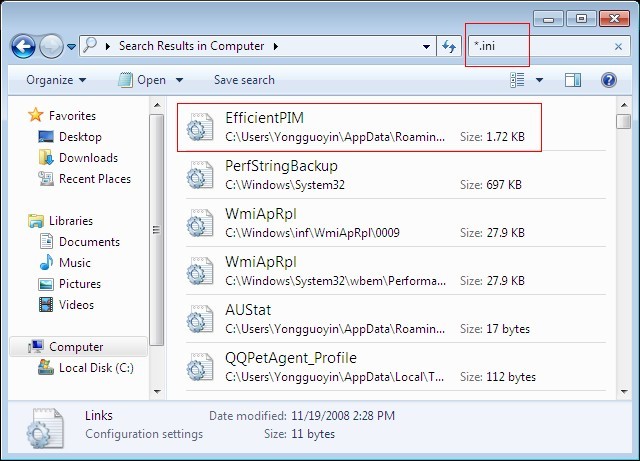 - If the way above could not solve the problem. Please search *.ini file in your computer (here we take EfficientPIM as an example) and then open the file.
