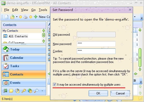 - When the administrator sets password for the shared file without connecting to server, whether he or she selects It may be accessed simultaneously by multiple users.